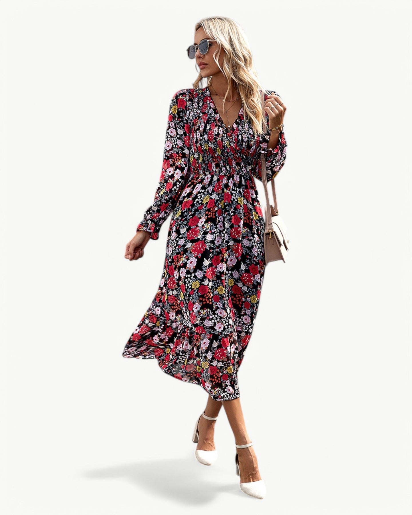 Elizza™ | Abito Midi Floreale Romantico con Maniche Lunghe