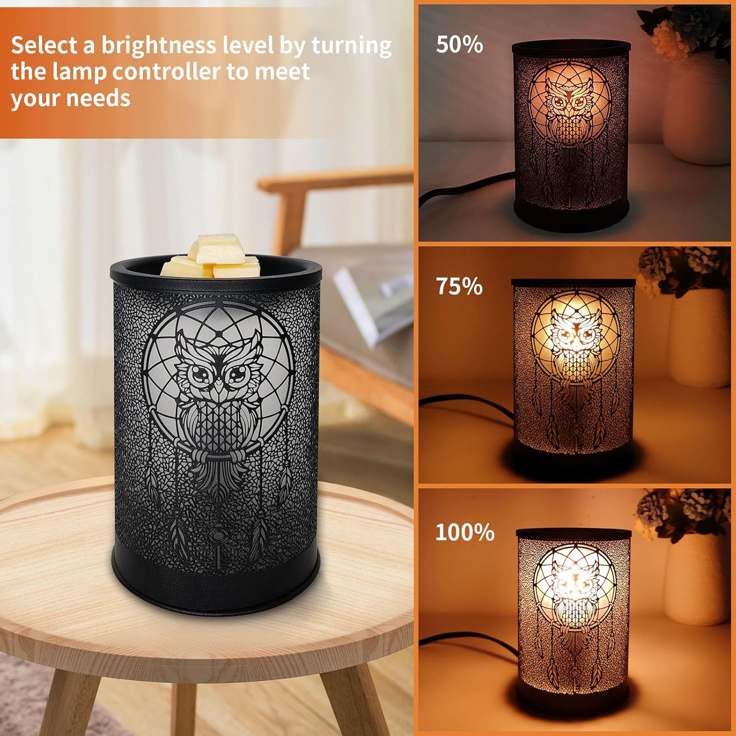 Questo raffinato scaldacera presenta un intricato design in ferro, luce regolabile per creare un’atmosfera accogliente e un sistema di riscaldamento sicuro senza fiamma, semplice da utilizzare.